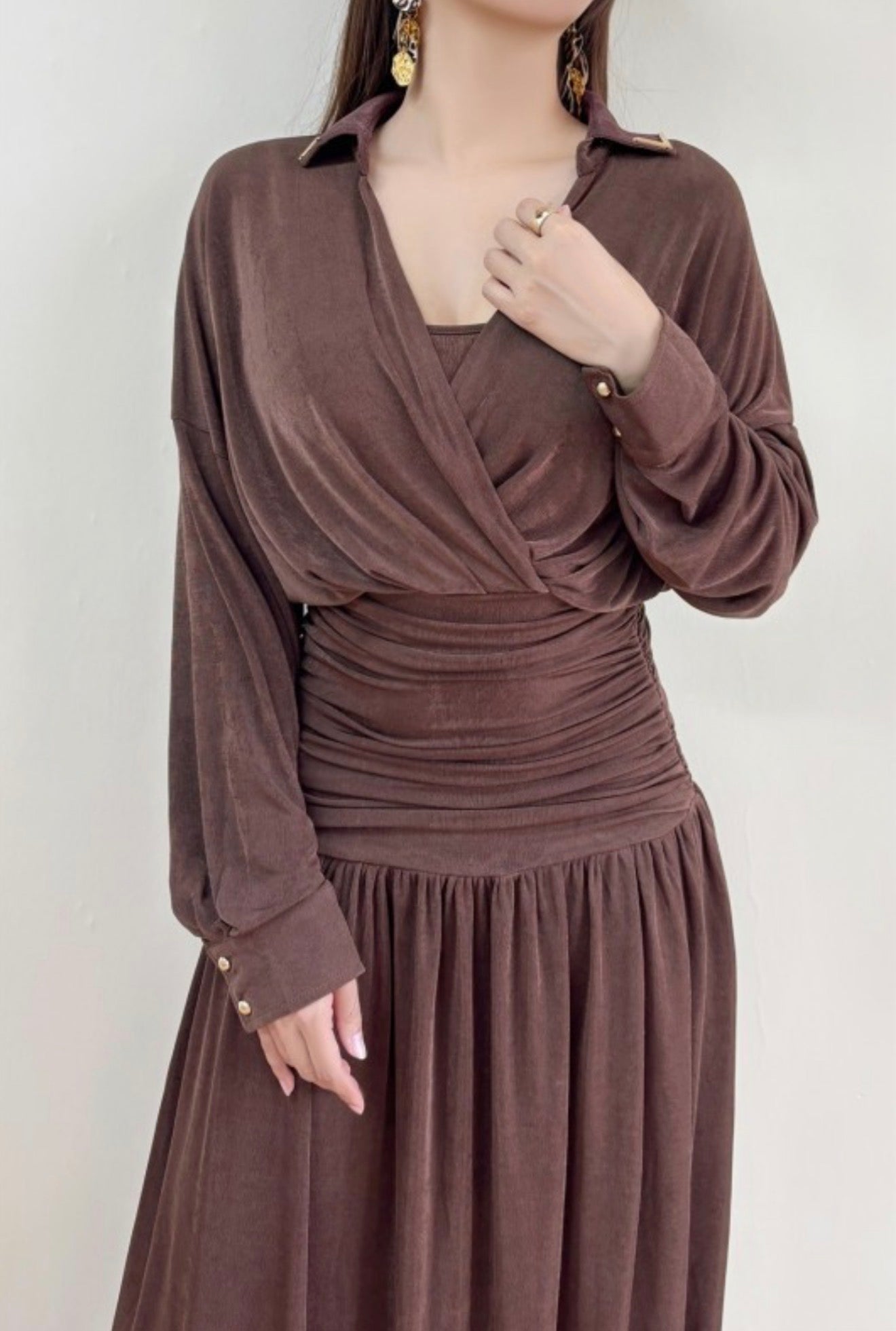 Elegant Chocolate Lace Sleeve Midi Dress
